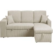 Canapé d'angle convertible beige Axel - Velours côtelé - Canapé: 233 x 146 x 86 cm - Couchage: 192 x 136 x 44 cm - Espace de stockage (méridienne) + étagère.
