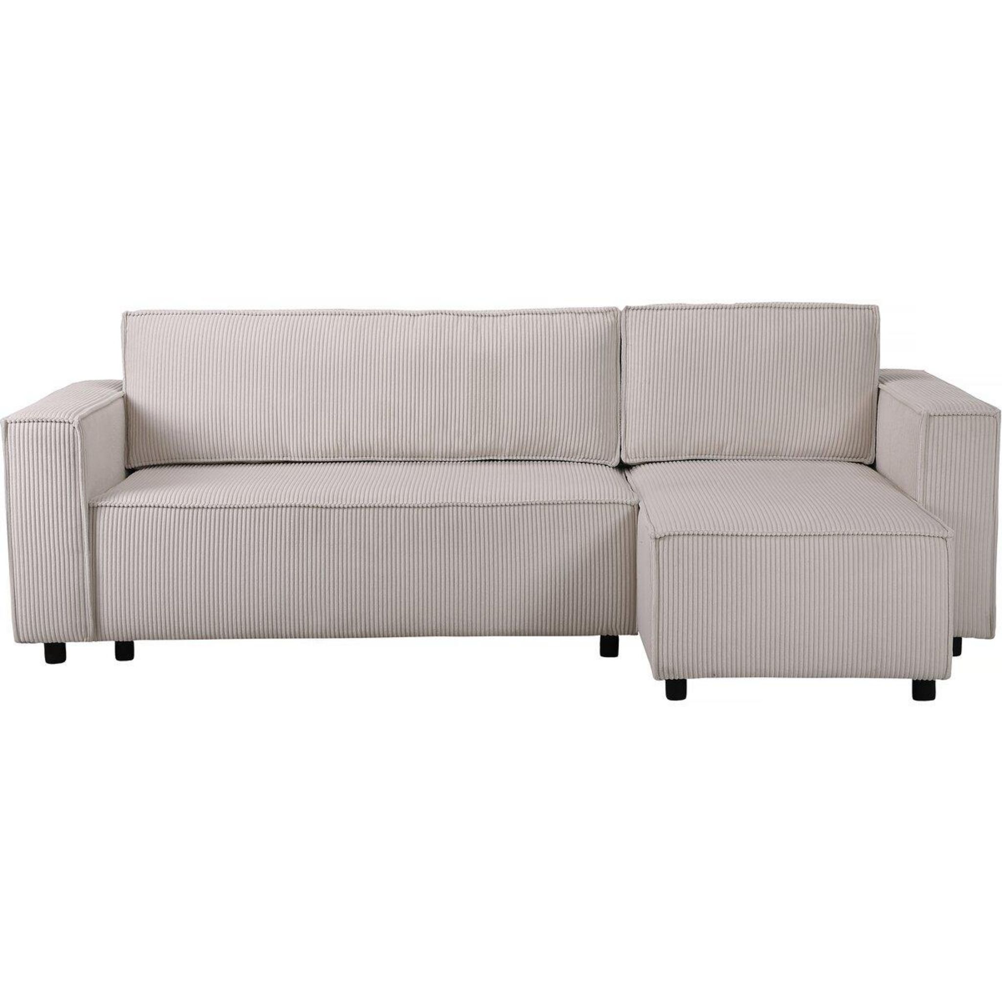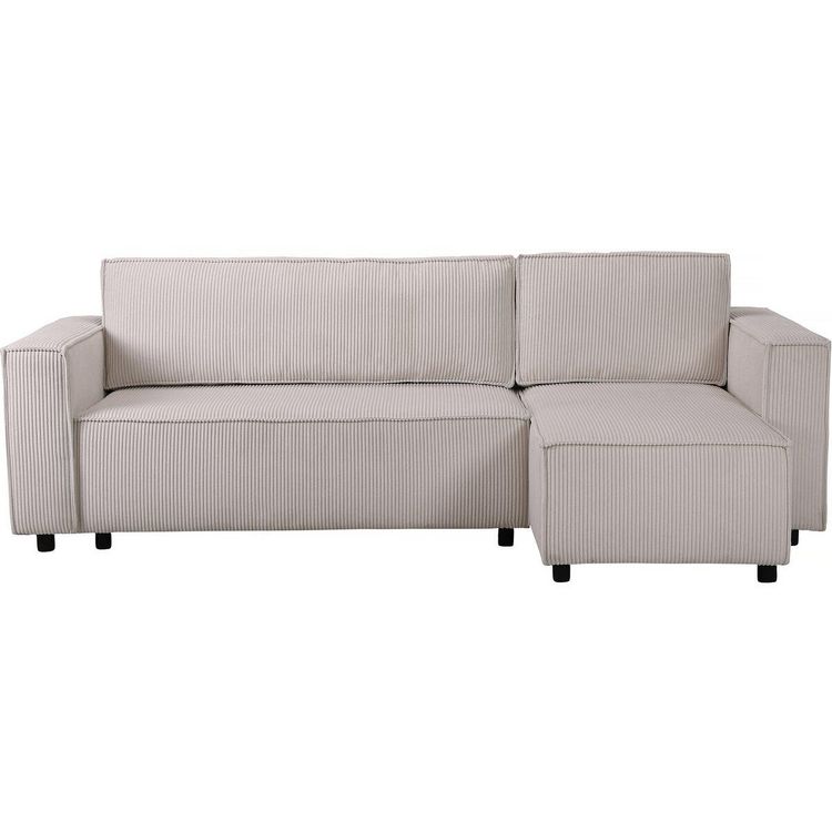 Canapé d'angle convertible et réversible Montaigne - 231 x 140 x 86 cm - Coffre de rangement - Velours côtelé - Beige..