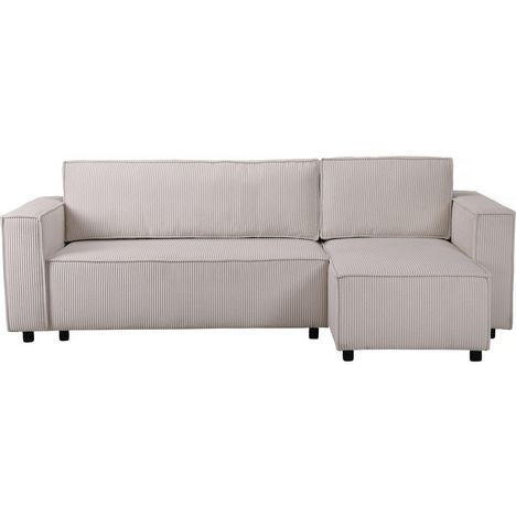 Canapé d'angle convertible et réversible Montaigne - 231 x 140 x 86 cm - Coffre de rangement - Velours côtelé - Beige..Canapé d'angle en velours côtelé Montaigne S - 3 places - Beige Transformez votre salon avec notre canapé d'angle en velours côtelé, combinant élégance et confort. Le velours c