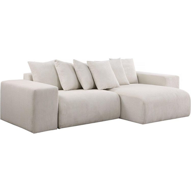 Canapé d'angle en velours côtelé Rivoli - 312 x 176 x 49 cm - Beige