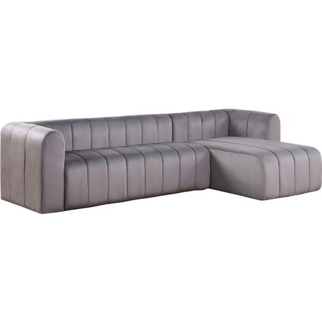 Canapé d'angle en velours Victor Hugo - 301 x 90 x 48.5 cm - Gris