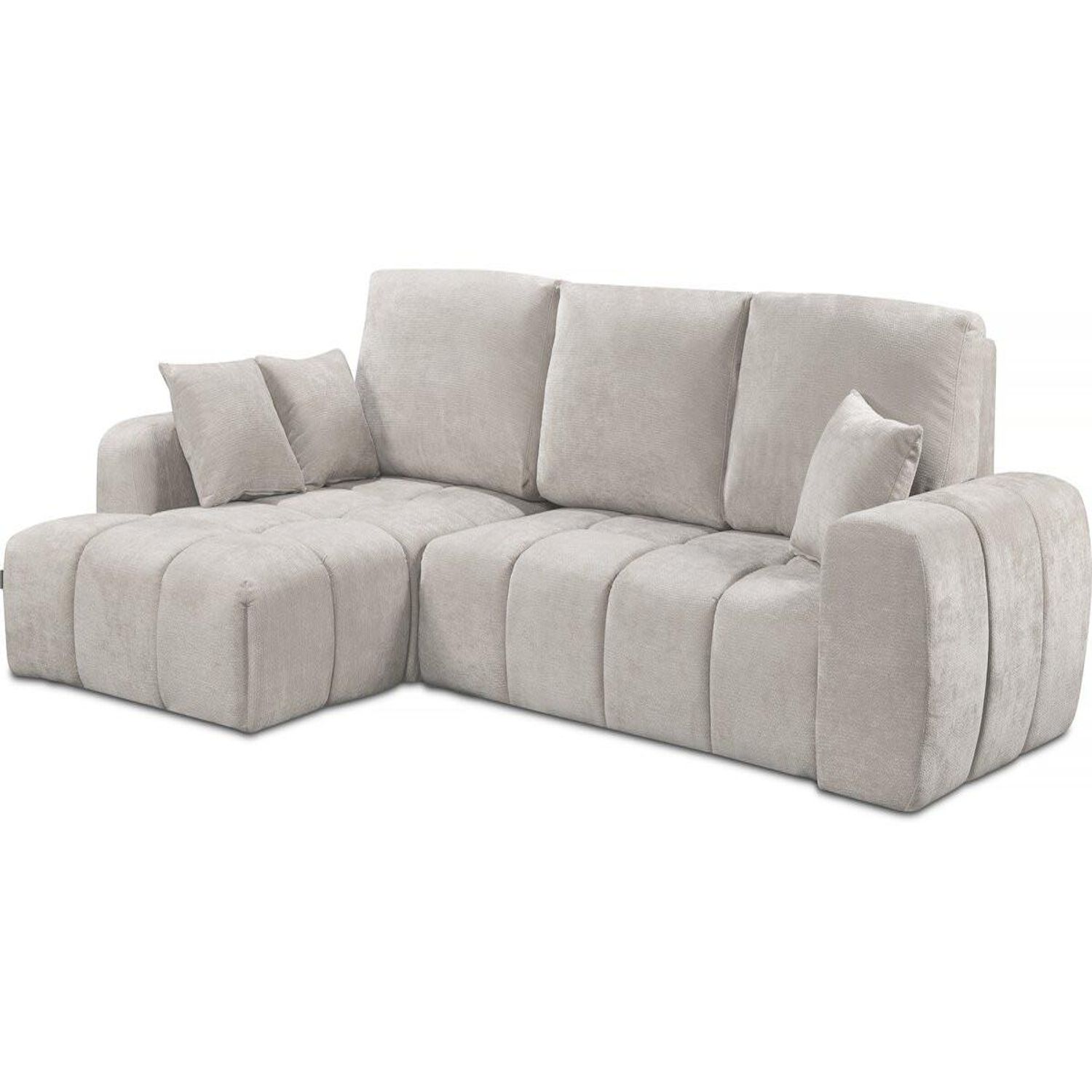 Canapé d'angle gauche Verneuil - Dimensions : 265 x 103/168 x 96 cm - Dimensions du couchage : 210 x 150 x 43 cm - Fonction convertible - Velours chenille - Structure en bois - Beige.Canapé d'angle gauche convertible en tissu chenille Verneuil - 265 x 168 x 96 cm - BeigeLe canapé Verneuil all