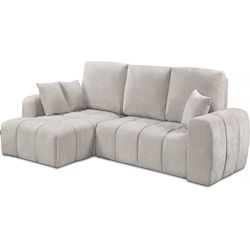 Canapé d'angle gauche Verneuil - Dimensions : 265 x 103/168 x 96 cm - Dimensions du couchage : 210 x 150 x 43 cm - Fonction convertible - Velours chenille - Structure en bois - Beige.
