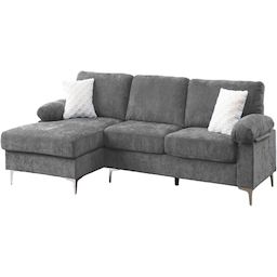 Canapé d'angle gauche fixe Jade - Dimensions : 261 x 135 x 86 cm - Tissu chenille - Gris clair - Poids: 63,5 kg.