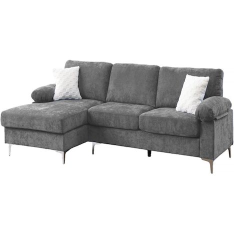 Canapé d'angle gauche en tissu chenille Jade - 3 places - Gris clair