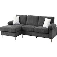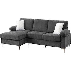 Canapé d'angle gauche en tissu chenille Jade - 3 places - Gris