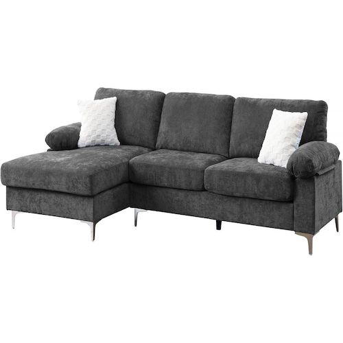 Canapé d'angle gauche fixe Jade - Dimensions : 261 x 135 x 86 cm - Tissu chenille - Gris - Poids: 63,5 kg.