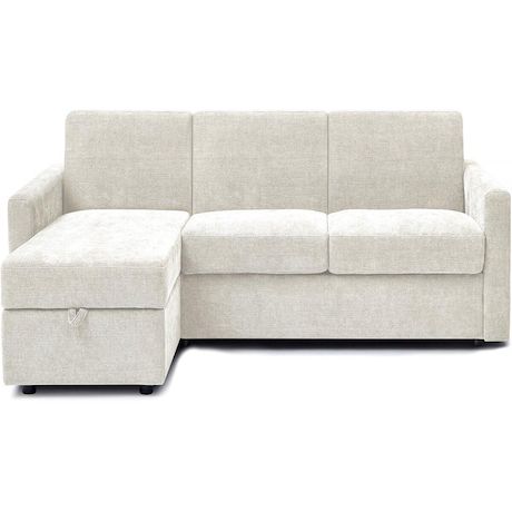 Canapé convertible express avec angle réversible Celia - 3 places - Dimensions : 240 x 99/161 x 83 cm - Fonction convertible express - Dimensions du couchage : 190 x 120 x 56 cm - Poids maximum supporté : 240 kg - Tissu - Beige.
