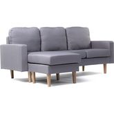 Canapé d'angle à méridienne réversible Gabby - 3 places - Gris clair - Dimensions : 194 x 75 x 84 cm - Style scandinave - En tissu - Structure en bois d'Eucalyptus et contreplaqué.