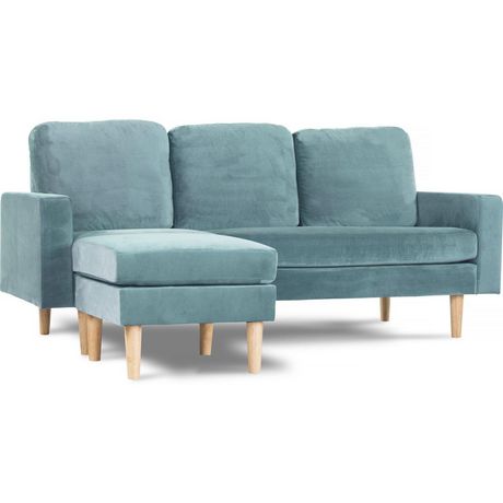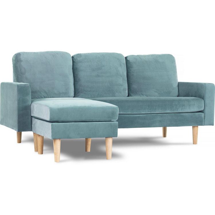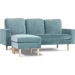 Canapé d'angle à méridienne réversible 'Gabby' - 3 places - Bleu - Dimensions : 194 x 75 x 84 cm - Style scandinave - En velours - Structure en bois d'Eucalyptus et contreplaqué