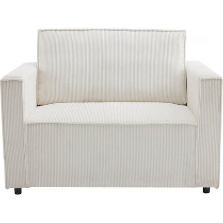 Canapé depliant convertible droit 2 places en velours côtelé - Grenelle - Beige - Dimensions : 155 x 94 x 76/87 cm.