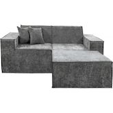 Canapé compressé avec ottoman en tissu texturé Lusso - 3 places - Gris