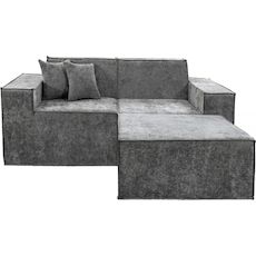 Canapé modulable 3 places avec ottoman Lusso - Dimensions canapé : 220 x 100 x 70 cm - Dimensions ottoman : 80 x 100 x 40 cm - Grammage du tissu : 300g/m² - Tissu texturé - Gris.