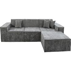 Canapé modulable 4 places avec ottoman Lusso - Dimensions canapé : 300 x 100 x 70 cm - Dimensions ottoman : 80 x 100 x 40 cm - Grammage du tissu : 300g/m² - Tissu texturé - Gris.