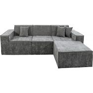 Canapé compressé avec ottoman en tissu texturé Lusso - 4 places - Gris