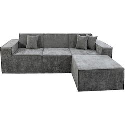 Canapé droit modulable avec ottoman en tissu texturé Lusso - 4 places - Gris