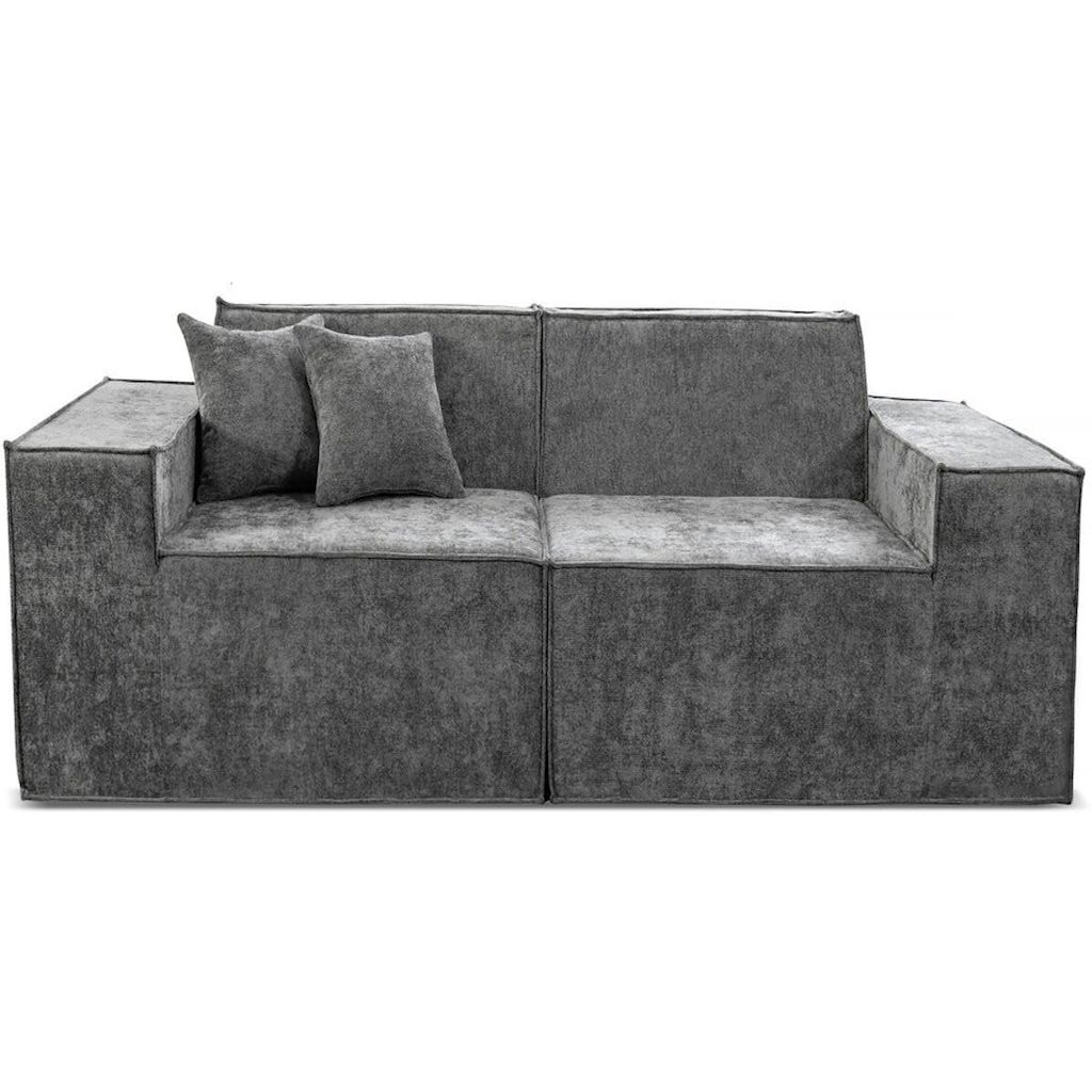 Canapé modulable 3 places Lusso - Dimensions canapé : 220 x 100 x 70 cm - Grammage du tissu : 300g/m² - Tissu texturé - Gris.