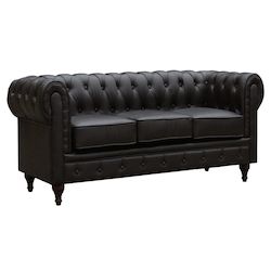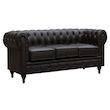 Canapé fixe Aliza Chesterfield - 3 places - Marron - Dimensions : 204 x 80 x 58 cm - Revêtement en PU capitonné - Design British - Pieds en bois.
