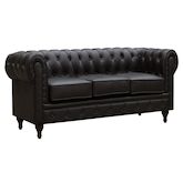 Canapé fixe Aliza Chesterfield - 3 places - Marron - Dimensions : 204 x 80 x 58 cm - Revêtement en PU capitonné - Design British - Pieds en bois.Canapé Aliza Craquez pour le charme de ce canapé de type chesterfield Aliza .Ce canapé design propose trois assises spacieuses et particulièrement conf