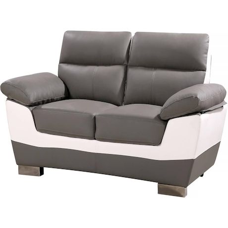 Canapé fixe en cuir reconstitué et PVC Dallas - 169 x 88 x 90 cm - 2 places - Gris/Blanc