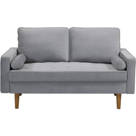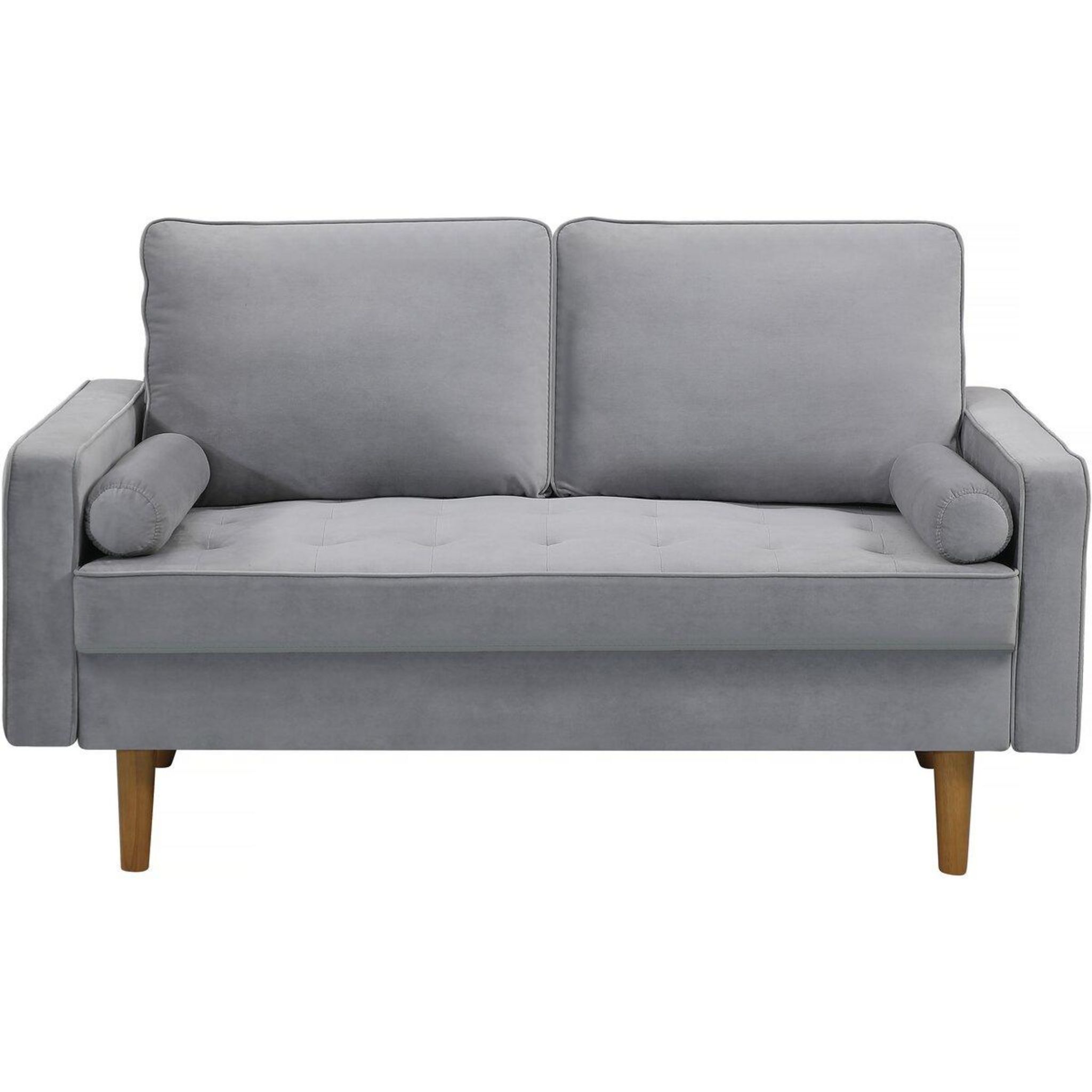 Canapé fixe en velours Yannick - 82 x 147 x 86 cm - 2 places - Gris clair.