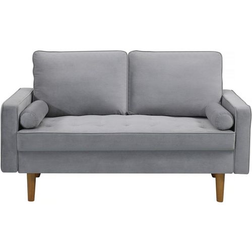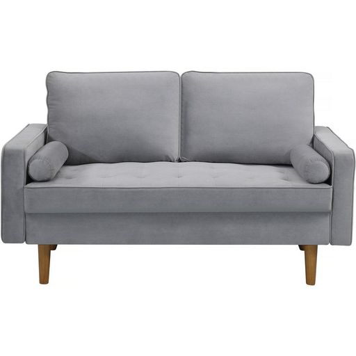 Canapé fixe en velours Yannick - 82 x 147 x 86 cm - 2 places - Gris clair - Revêtement en velours - 100% Polyester - Structure en bois d'eucalyptus..