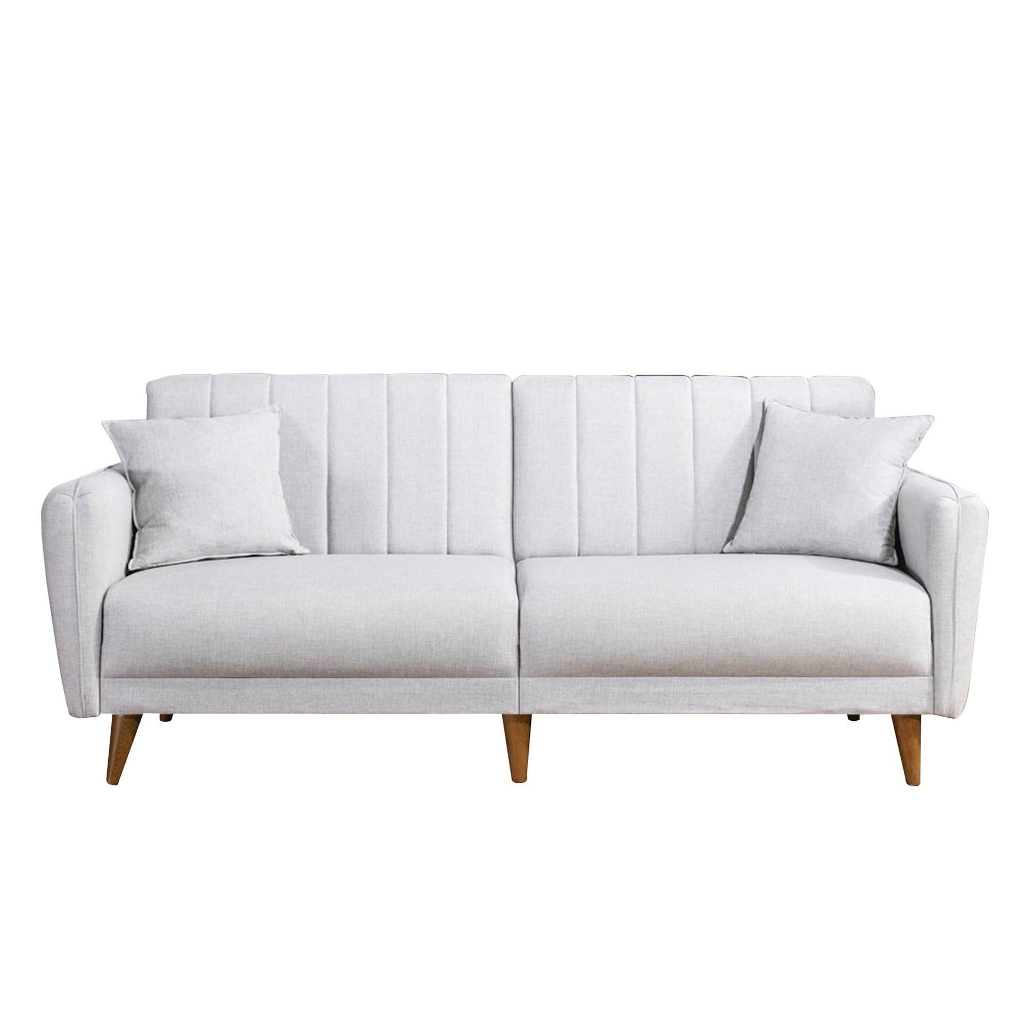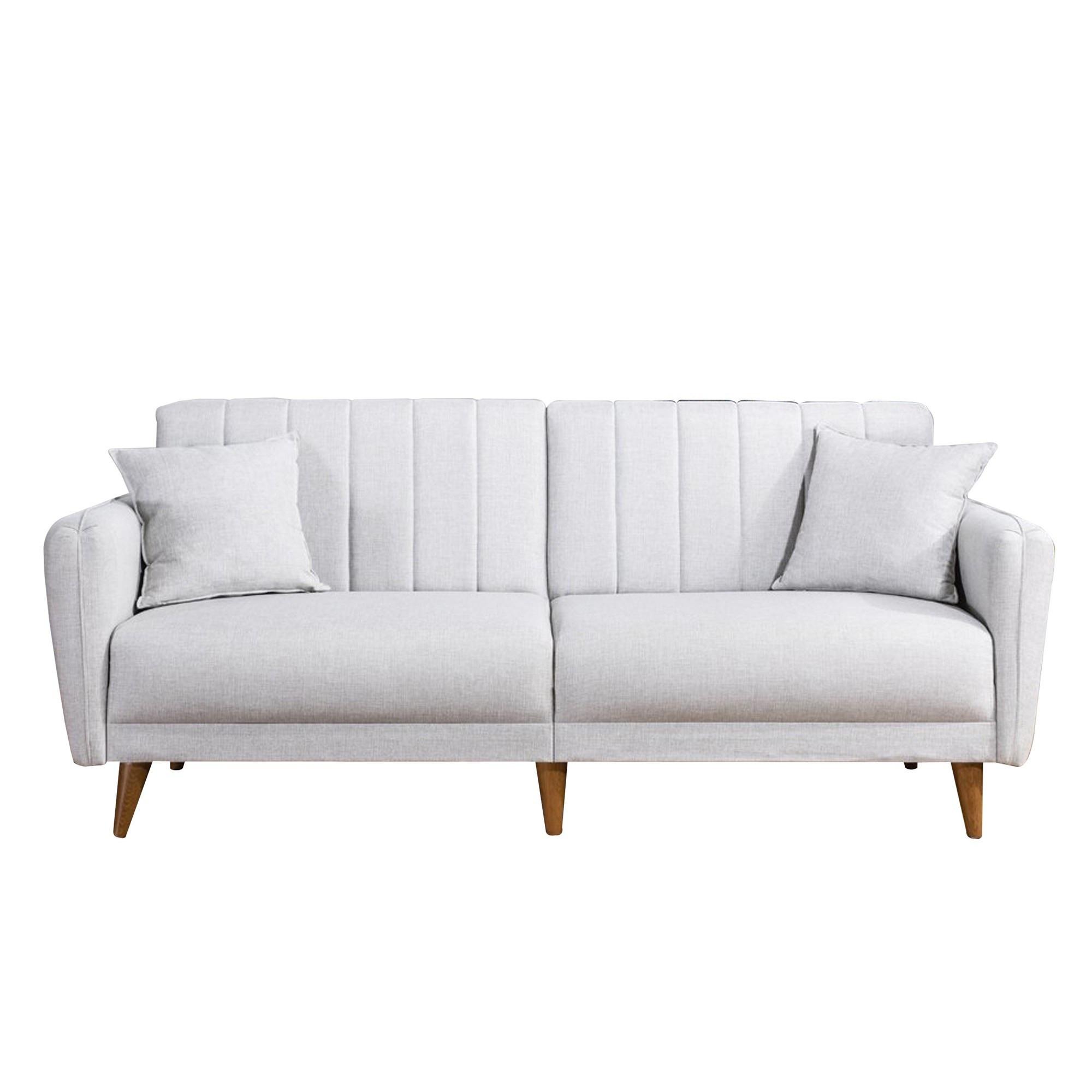 Canapé-lit 3 places moderne, lin crème, 205 x 85 x 85 cm. Structure en bois de charme et métal, rembourrage en mousse 28 DNS, pieds en bois (17 cm). Design scandinave élégant, idéal pour le salon et la chambre d'amis..Canapé-lit 3 places en tissu Aqua Donnez du caractère à votre décoration avec ce