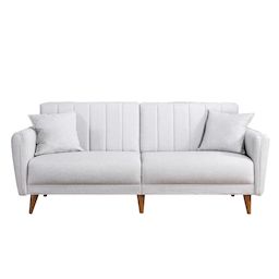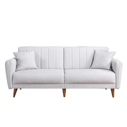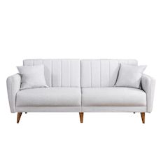 Canapé-lit 3 places en tissu Aqua Donnez du caractère à votre décoration avec ce canapé-lit 3 places pensé pour allier style et praticité. Son design soigné et ses finitions élégantes s'intègrent facilement dans une ambiance moderne, naturelle ou plus altique.Points fortsLook tendance pour sublimer votre intérieurFormat adapté aux espaces du quotidienIdéal pour le salon, la chambre ou l'entréeCaractéristiquesMatière : tissuDimensions : 205 x 85 x 85 cmColoris : CrèmeAstuce déco : associez-le à des matières naturelles (bois, textile, métal) pour un rendu harmonieux et chaleureux. Un choix parfait pour apporter une touche élégante sans surcharger la pièce.Canapé-lit 3 places moderne, lin crème, 205 x 85 x 85 cm. Structure en bois de charme et métal, rembourrage en mousse 28 DNS, pieds en bois (17 cm). Design scandinave élégant, idéal pour le salon et la chambre d'amis. .Finition: Bois, métal, tissu