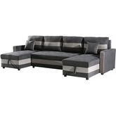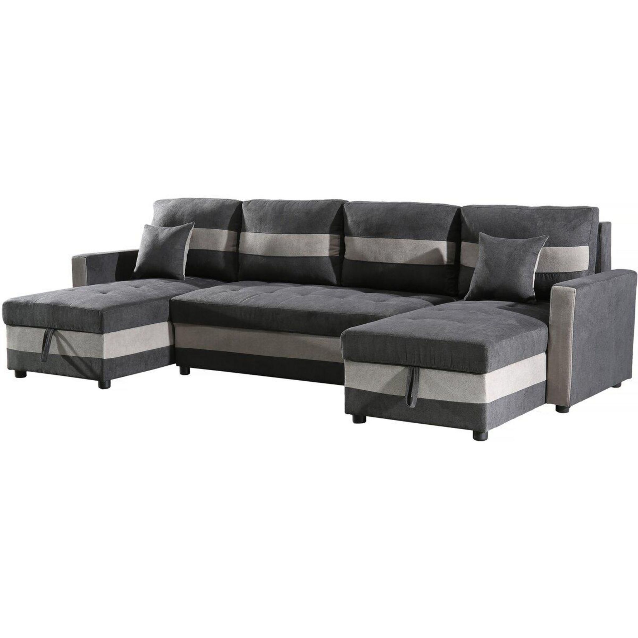 Descriptif : Canapé panoramique Antoine - Convertible - 2 coffres de rangements - 5 places - Tissu - Gris foncé / Gris clair.