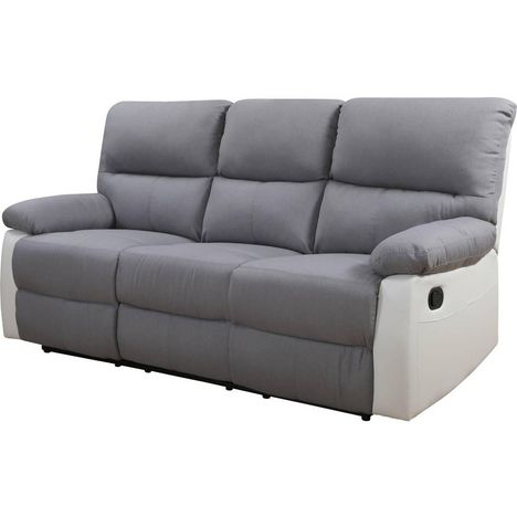 Canapé relax 3 places Lincoln - Blanc/Gris clair - Dimensions : 197 x 89 x 103 cm - Revêtement en PVC et en tissu - Rembourrage mousse et polyester.Fauteuil relax Lincoln Avecle fauteuil relax Lincoln, se relaxer est à portée de main ! Le fauteuil relax estun incontournableen matière de mobilie