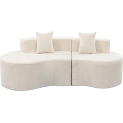 Canapé virgule en tissu texturé Avola - 3 places - Beige