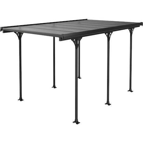 Structure: Toit / panneaux : polycarbonate Cadre : aluminium - Support en acier peint Dimensions totales : 5.02 x 3.13 x 2.05 m