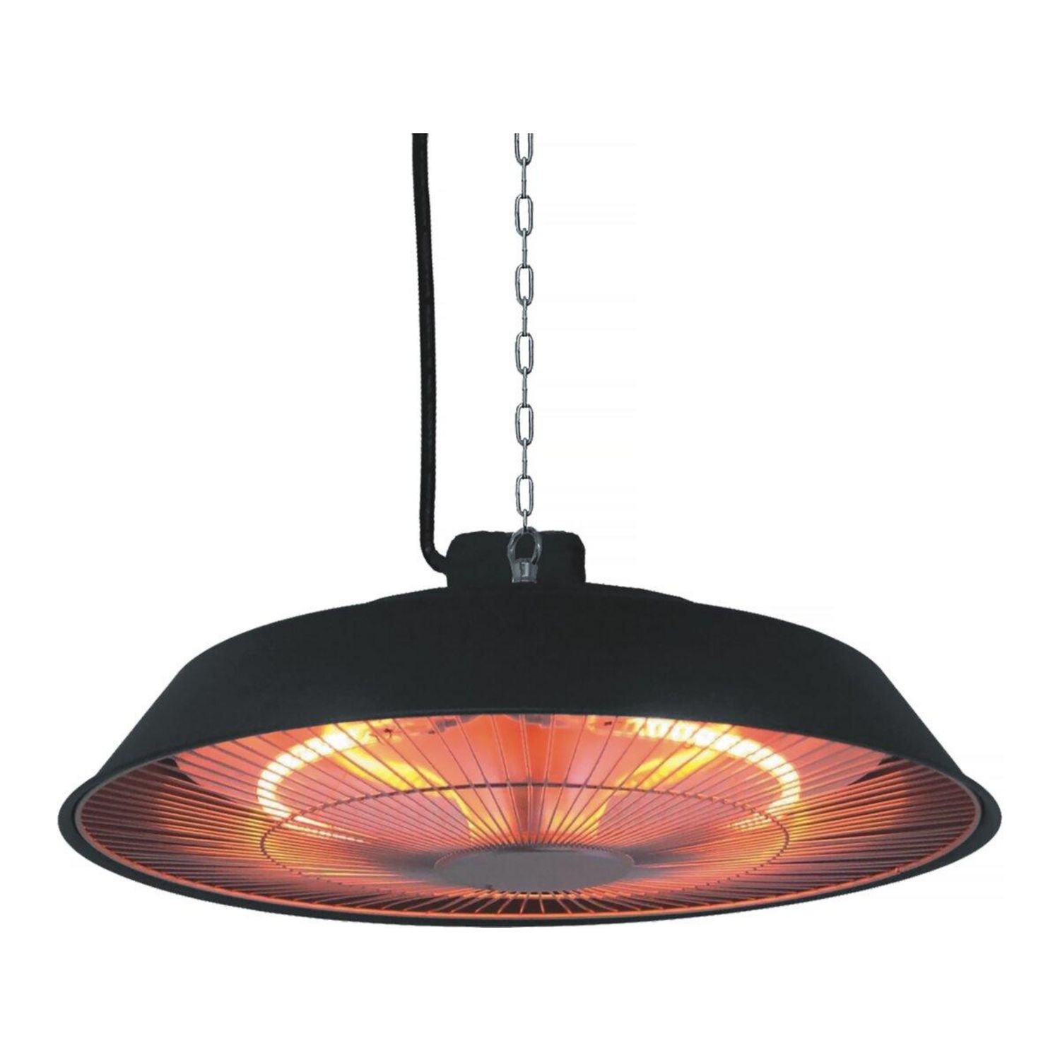 Chauffage électrique suspendu - 1500W - Noir.Chauffage électrique suspendu Chauffer un espace extérieur n'a jamais été aussi facile grâce à ce chauffage tendance et moderne infrarouge électrique. Offrez-vous une qualité de chaleur distribuée sans bruit, avec une puissance de chauffe de 1500W .
