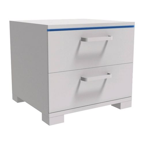 Table de chevet LED Karina - Dimensions : 41 x 38 x 39 cm - Blanc - Panneaux de particules.Cette table de chevet LED dispDescriptif : Table de chevet 2 tiroirs Forme rectangulaire Lumière LED.Matière : Panneaux de particules 15 mm pour le plateau 15 mm pour la structure.Tiroir : 2 tiroirs.Dimensio