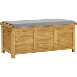 Banc de jardin  Gana  avec coffre en bois de sapin - 200 L - 125 x 60 x 54 cm - Marron - Coussin fourni.Coffre de jardin  Gana  en bois.  Offrez-vous ce coffre de jardin en bois afin de vous permettre un espace de rangement supplémentaire et efficace parfait pour ranger vos outils, les jouets des en