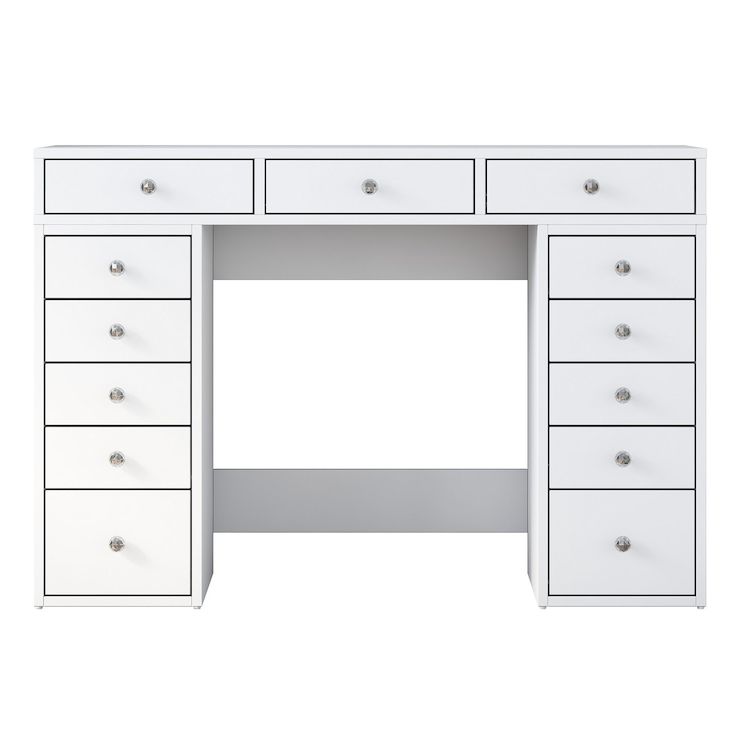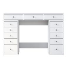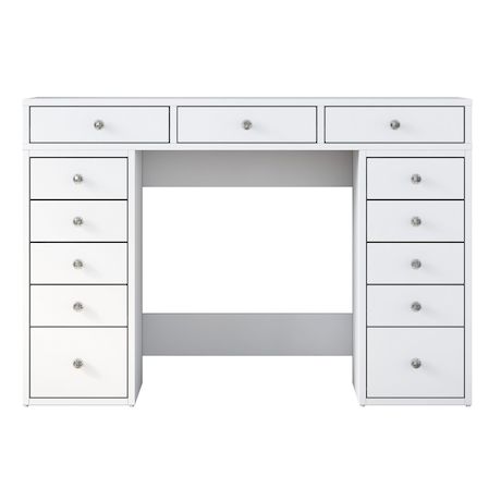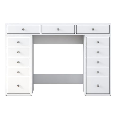 Table de maquillage - Dimensions : 120 x 44 x 82 cm - Blanc - Bois - Epaisseur : 18 mm - 13 tiroirs.