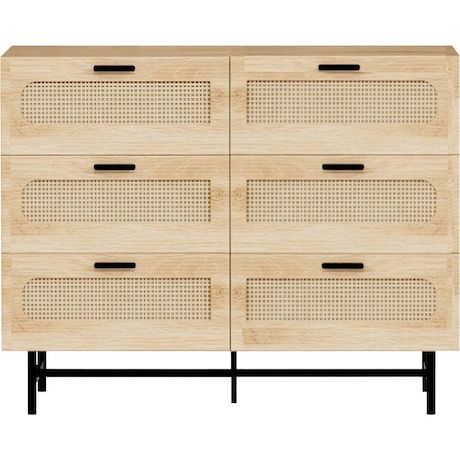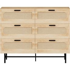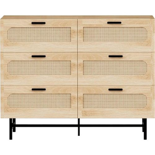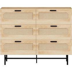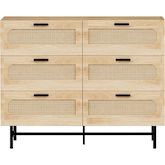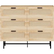 Commode style cannage Harrison - Bois - Dimensions: 120 x 40 x 75 cm - 6 tiroirs - Poids maximum par tiroir : 5 kg - Beige.