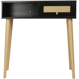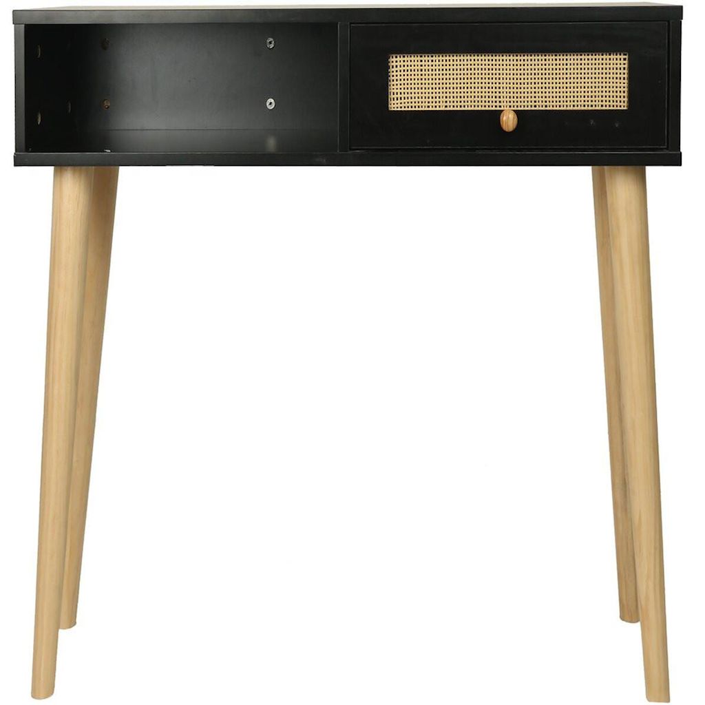 Console bois style scandinave Marine - 100 x 29 x 81 cm - 4 pieds en bois - 1 tiroirs en cannage - 1 espace de rangement - noir.Console Marine - 100 x 29 x 81 cm - Noir :Ajoutez une touche de sophistication à votre intérieur avec la console Marine . Avec ses dimensions de 100 x 29 x 81 cm, elle