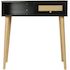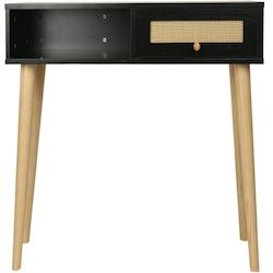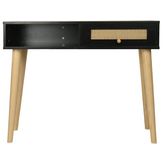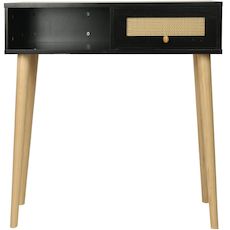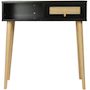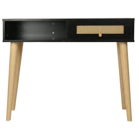 Console bois style scandinave Marine - 100 x 29 x 81 cm - 4 pieds en bois - 1 tiroirs en cannage - 1 espace de rangement - noir.