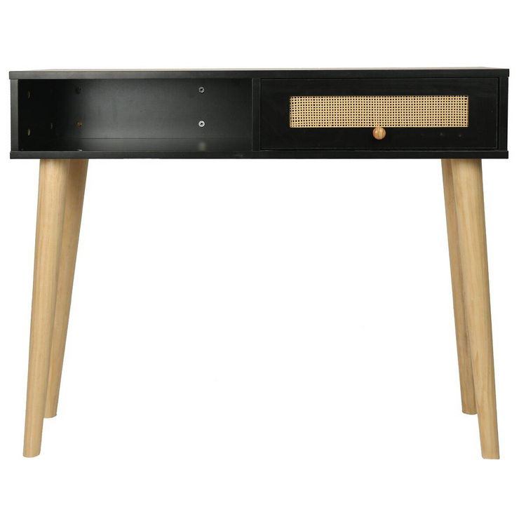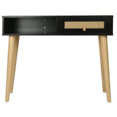 Console bois style scandinave Marine - 100 x 29 x 81 cm - 4 pieds en bois - 1 tiroirs en cannage - 1 espace de rangement - noir.Console Marine - 100 x 29 x 81 cm - Noir : Ajoutez une touche de sophistication à votre intérieur avec la console Marine . Avec ses dimensions de 100 x 29 x 81 cm, e