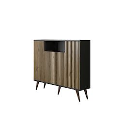 Console en bois FRN-9004-1 - 35 x 140 x 91 cm - Bois, Noir, Pin Atlantique – 1 étagères, 2 portes, couleur bois, noir, pin atlantique.