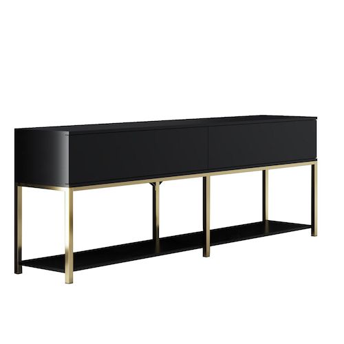 Console en bois Lord - 150 x 30 x 80 cm - NoirOr – 1 étagère, 2 portes Conçu pour offrir praticité et robustesse, ce modèle s'intègre facilement dans tout intérieur et répond aux besoins du quotidien en garantissant confort d'usage..