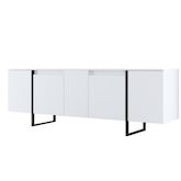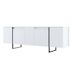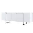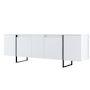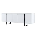Console moderne, 160 cm de large, blanche et noire, 80 cm de hauteur. Panneaux de particules 100 % mélaminés, 18 mm d'épaisseur, pieds en métal robustes. Élégante et fonctionnelle pour la maison, le bureau et le salon..