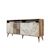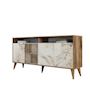 Console en bois Milan - 35 x 160 x 78 cm - Noyer, Marbre Blanc – 2 étagères, 4 portes, 2 niches, couleur noyer, marbre blanc.