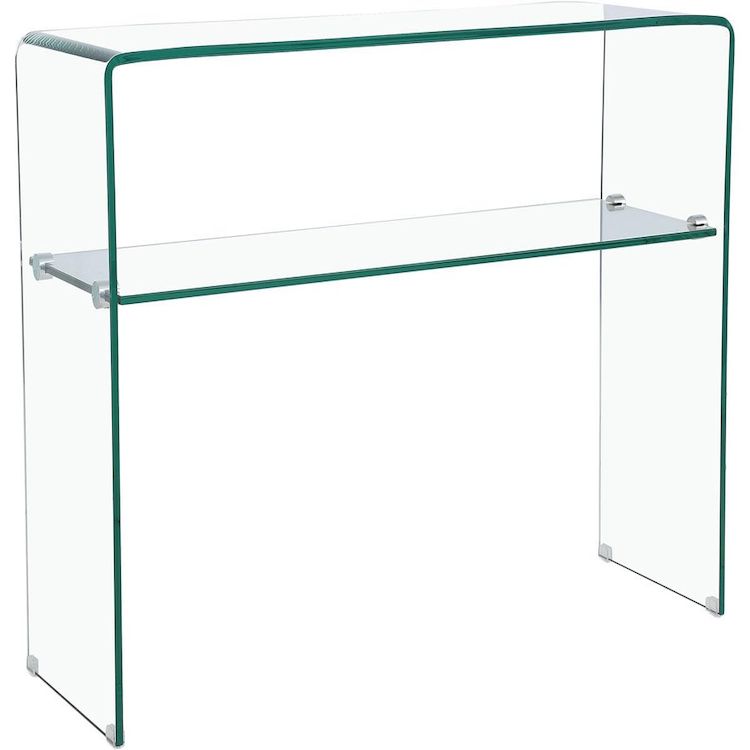 console Genova Le verre trempé courbé La console Genova est entièrement constituée de verre trempé. D'une épaisseur de 12 mm, celui-ci a été traité à chaud afin de produire des angles arrondis. Contrairement au verre altique, le verre trempé est extrêmement plus solide et plus résistant.