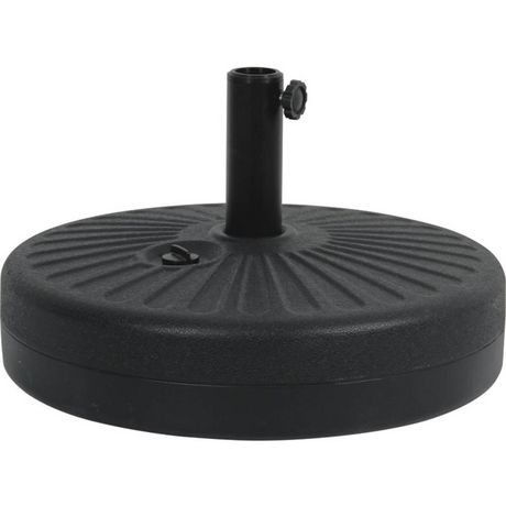 : Dalle noir circulaire pour parasol de jardin - 51 x 51 x 14.5 cm - A remplir avec de l'eau pour ajouter du poids et faire un lestage efficace - En polyéthylène haute densité - Très facile d'installation - Le remplissage maximum d'eau est de 19.5kgs d'eau.