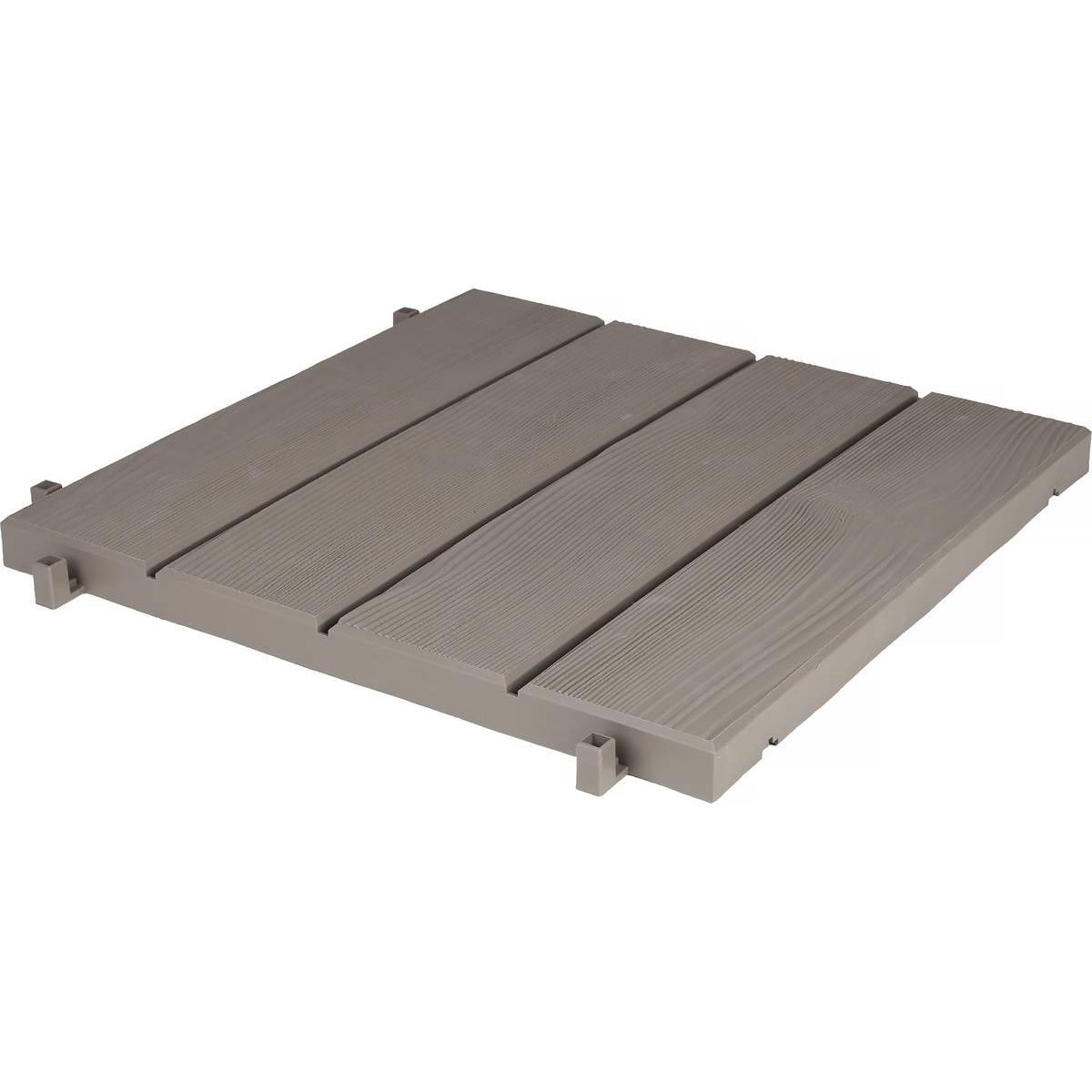 Dalle en plastique imitation bois - Lot de 6 unité (1m²) - Dimensions : 38.4 x 38.4 x 2.5 cm - Matière : Polypropylène - Taupe.Dalle en plastique imitation bois Reconnue pour sa simplicité de pose, par clipsage, cette dalle en polypropylène imitation bois est parfaite pour obtenir un résultat prof