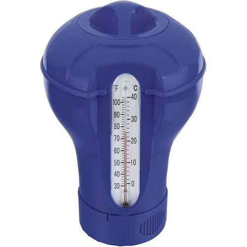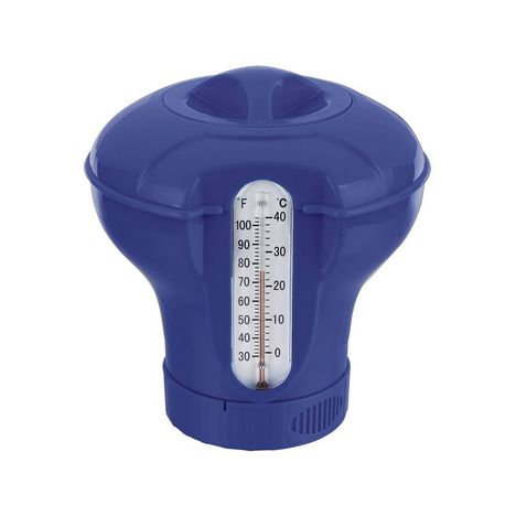 Diffuseur de chlore flottant avec thermomètre intégré - Dimensions : 18 x 17 x 19.5 cm - Matières : polypropylène + polystyrène - Couleur : Bleu.