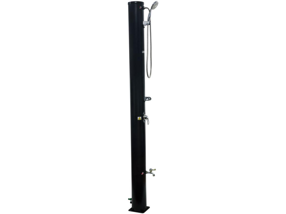 En savoir +Douche solaire de jardin 40 litres - 16 x 220 cm - Structure en PVC - Pommeau de douche amovible - Avec mitigeur et rince-pieds - Noir.