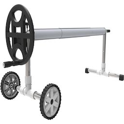 Enrouleur de couverture solaire mobile - petit modèle avec roue de déplacement - Longueur de 4.90 x 6.45 m - Ø des tubes 76 / 81 mm - 3 tubes de 2.44 m.Enrouleur de couverture solaire mobile - petit modèle avec roue de déplacement - Longueur de 4.90 x 6.45 m - Ø des tubes 76 / 81 mm - 3 tubes